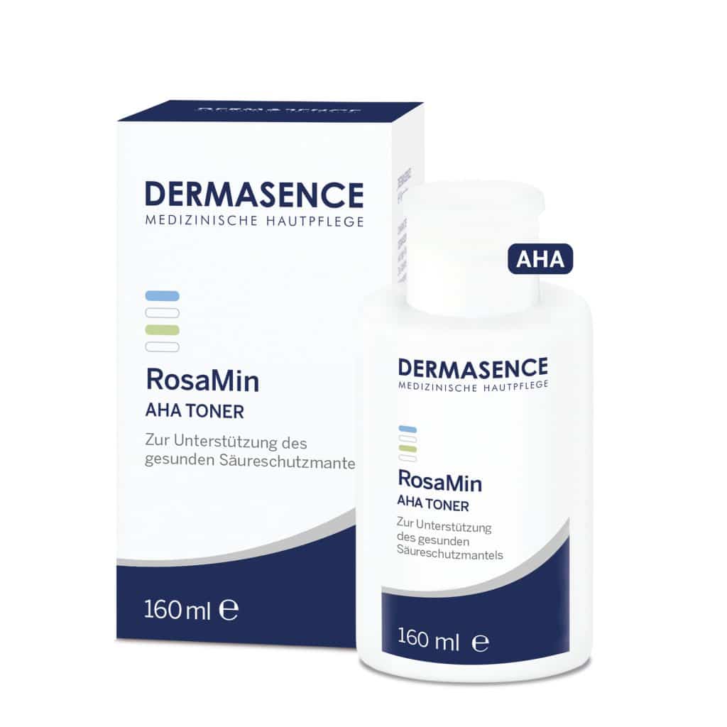 Dermasence RosaMin AHA Toner is een huidbarrièreversterkende gezichts-toner die de natuurlijke zuurmantel van de huid ondersteunt en helpt de poriën te verfijnen. De milde formule bevat een hydraterend complex met AHA-zuren zoals glycolzuur en melkzuur dat de huid zacht exfolieert en de teint egaliseert zonder te irriteren. Deze toner is parfum-, alcohol- en surfactant-vrij en ideaal voor de gevoelige huid, inclusief de huid met neiging tot roodheid of couperose.