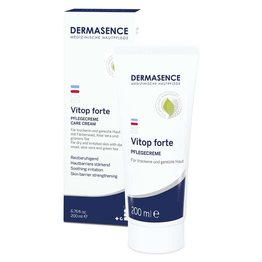 Dermasence Vitop Forte Care Cream is een intensieve verzorgende crème die speciaal is ontwikkeld voor de gevoelige, droge en geïrriteerde huid. De formule ondersteunt het herstel van de huidbarrière en helpt jeuk, roodheid en trekkerigheid te verminderen, terwijl verzachtende en herstellende ingrediënten de huid comfort en balans geven. Vitop Forte Care Cream kan worden ingezet bij huidreacties, uitdroging, atopische neiging of als aanvullende verzorging bij dermatologische behandelingen.